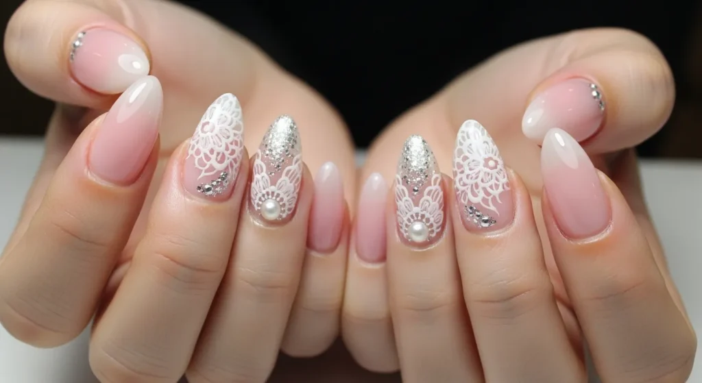 Almond nails are a go-to for brides, bridesmaids, and formal events thanks to their chic appeal.