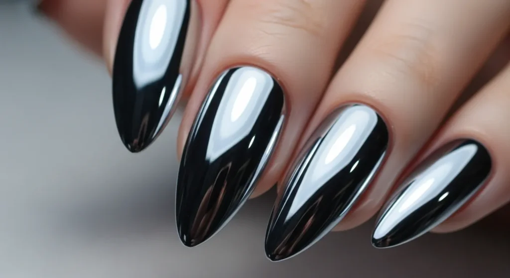 Want something fresh? Pink/chrome with almond shape gives your nails a futuristic yet feminine edge that’s Instagram-ready.