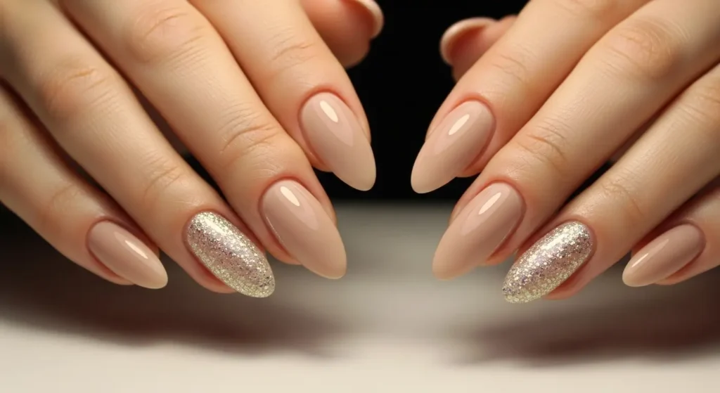 “I’m loving these neutral almonds.” Neutral almond nails are perfect for work, weddings, or casual wear, matching every outfit effortlessly.