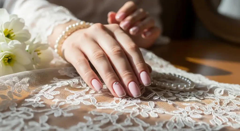 Elegant bridal nails emphasize simplicity and refined styling.
