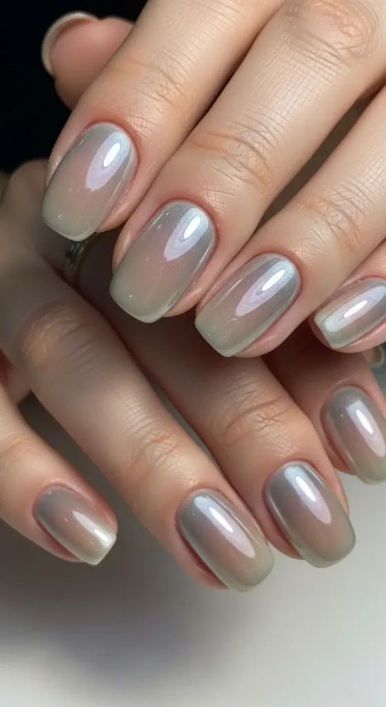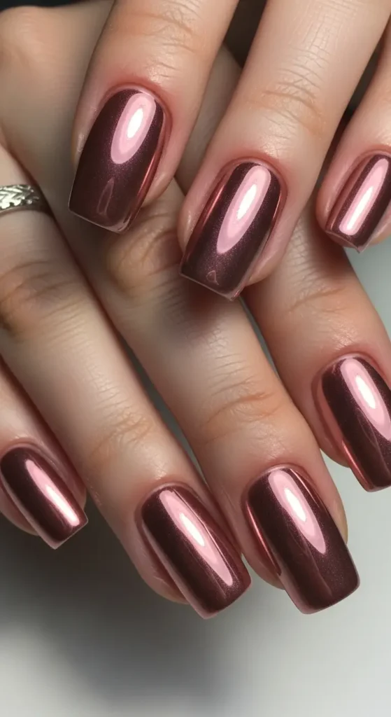 Nude chrome nails offer a subtle metallic glow. This style is perfect if you want something elegant and minimal.