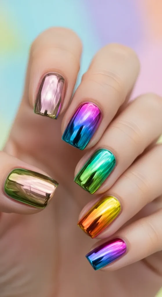 11. Multicolor Chrome Nails’