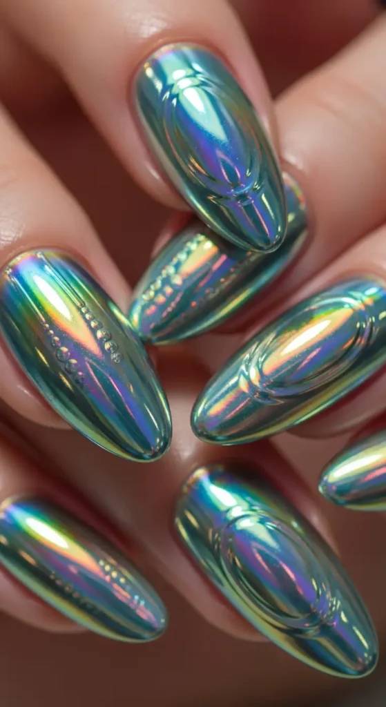 8. Holographic Chrome Nails