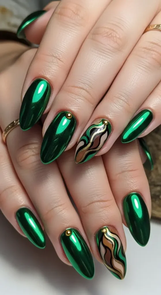 9. Green Chrome Nails