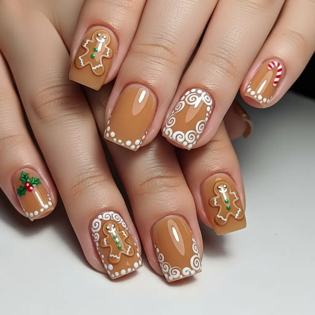 1. Classic Gingerbread Man Nails