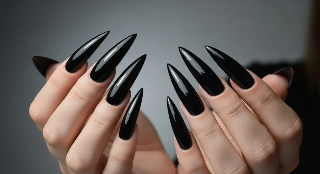Stiletto nails create a striking, dramatic appearance thanks to their sharp pointed tip. They work best on long nails and are often used for statement nail art designs. However, they require more care.