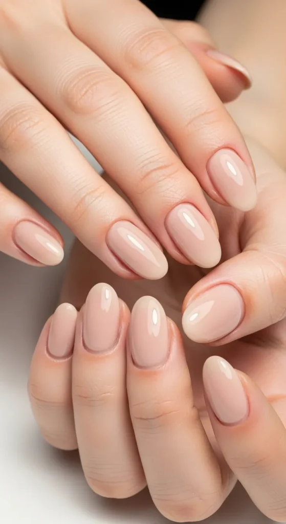 A glossy nude finish on the obele shape creates a clean and timeless manicure. The soft rounded edges make hands look elegant and well-groomed without feeling overdone. This is perfect for everyday sophistication.
