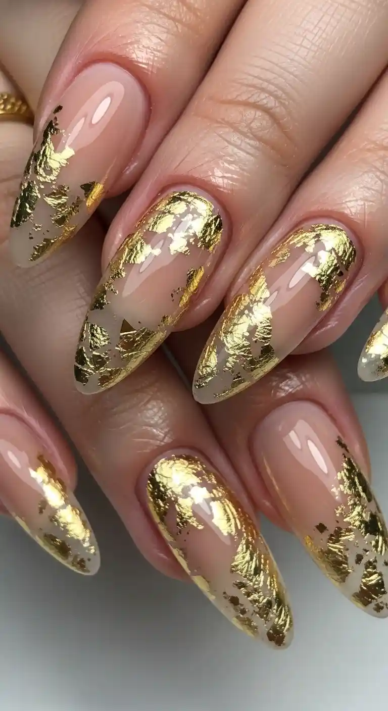 Fine gold foil accents instantly elevate simple obele nails. The metallic details catch the light while the soft shape keeps everything elegant. It’s a perfect balance of minimal and luxe.