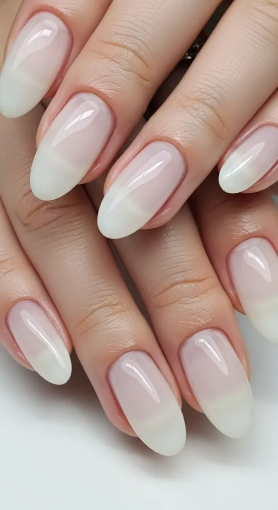 Milky white polish enhances the softness of the obele shape beautifully. The semi-sheer finish gives a clean, modern vibe that looks expensive and minimal. It’s especially popular for a fresh, barely-there aesthetic.