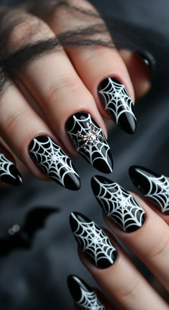 Keywords: spiderweb nails, Halloween nail designs, spooky nail art