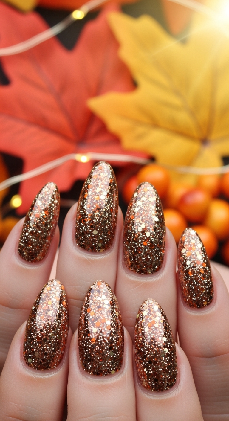 Keywords: glitter nails, sparkly fall nails, autumn nail art