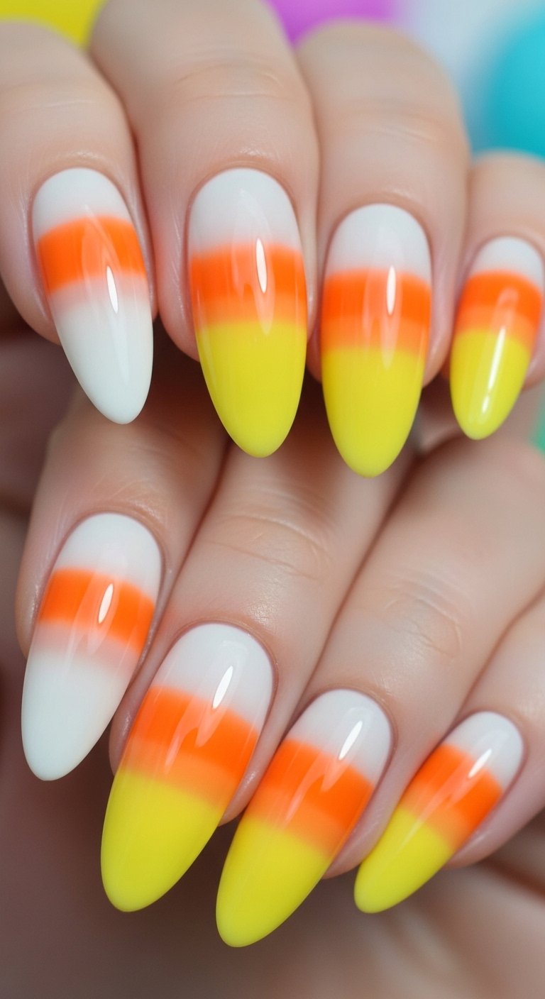 Keywords: candy corn nails, Halloween nail art ideas, October manicures