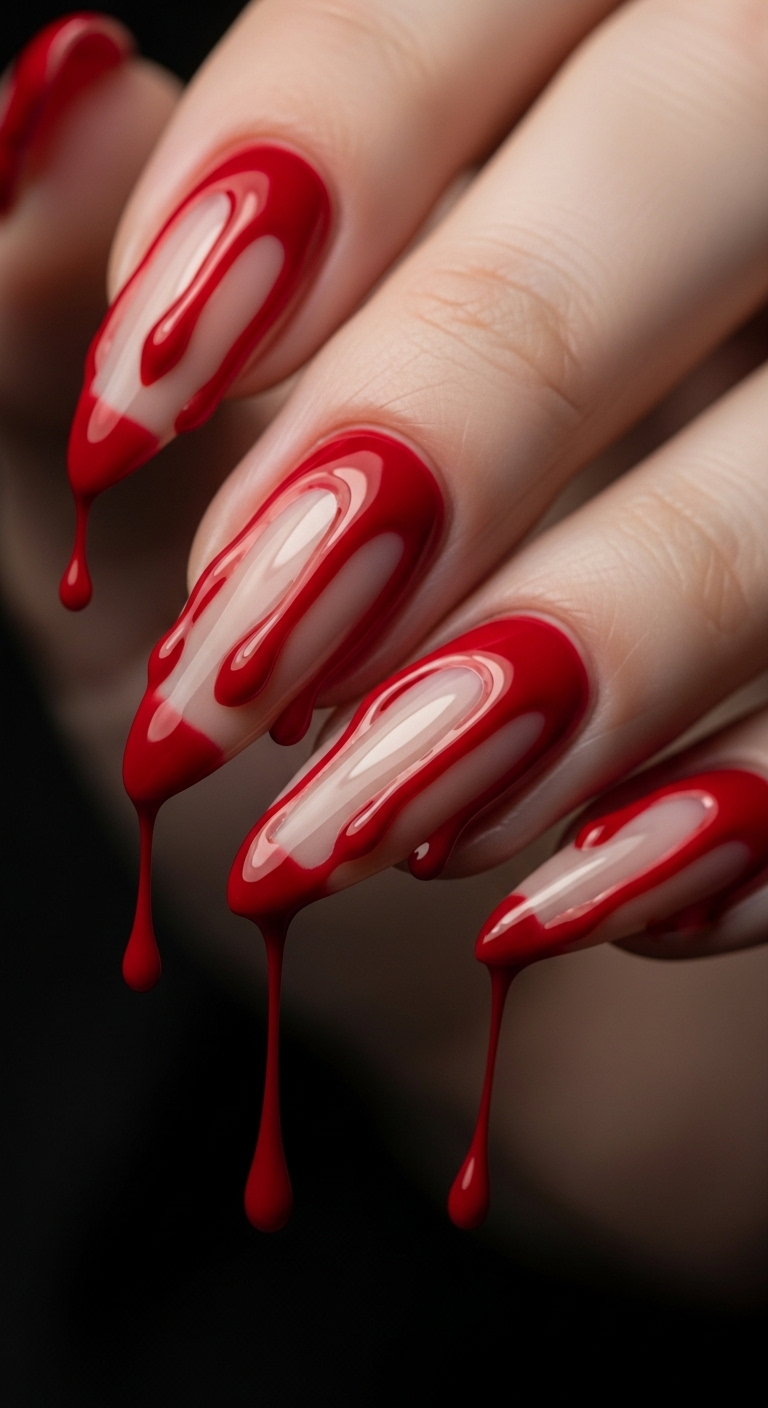 Keywords: blood drip nails, spooky nails, scary Halloween nails