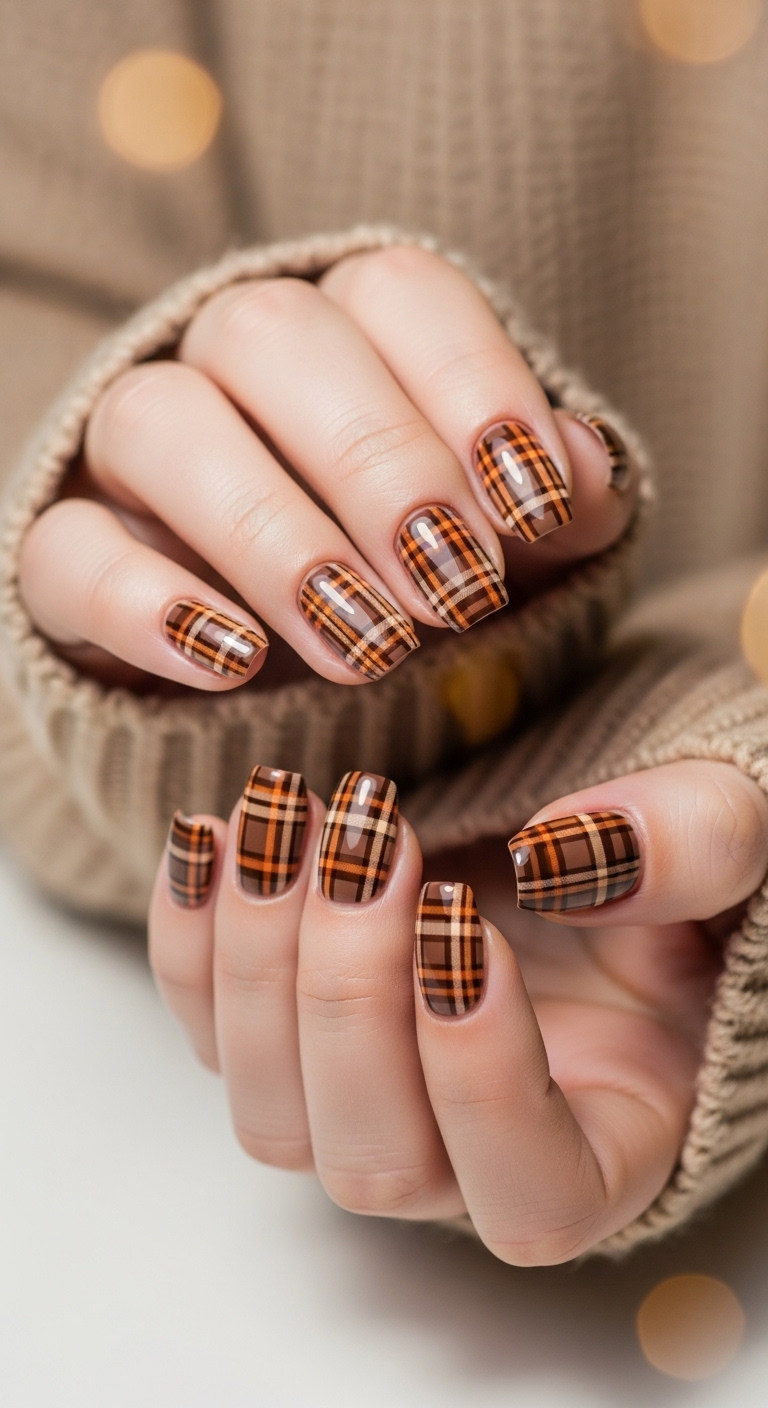 Keywords: plaid nails, fall nail designs, cozy autumn nails