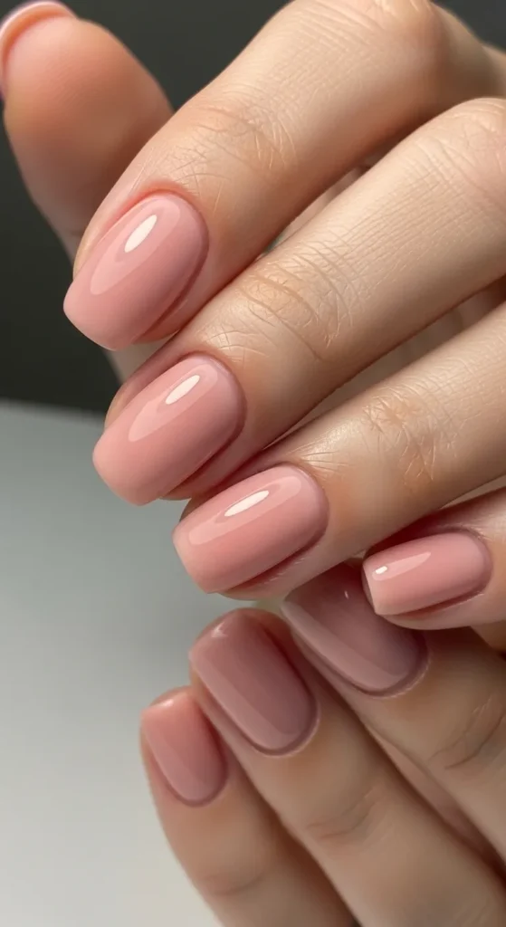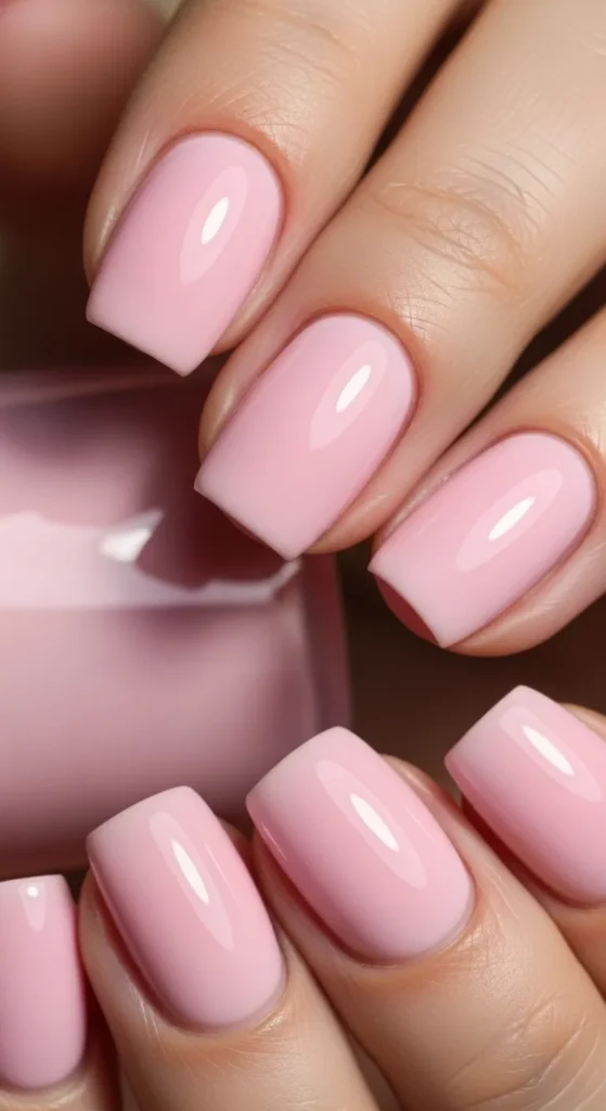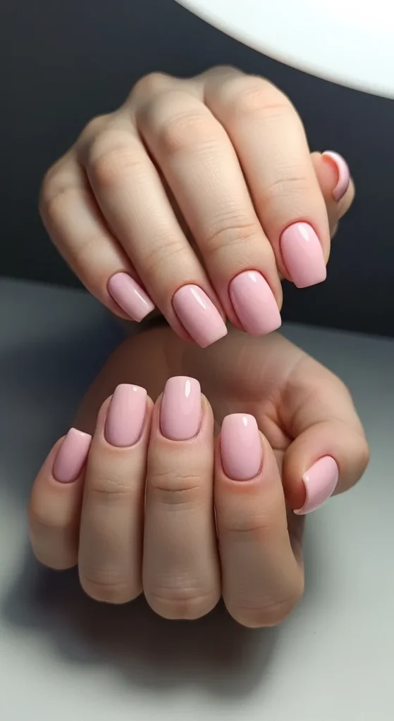 Light pink polish on short nails creates a simple and polished appearance. This style is easy to maintain and looks fresh.