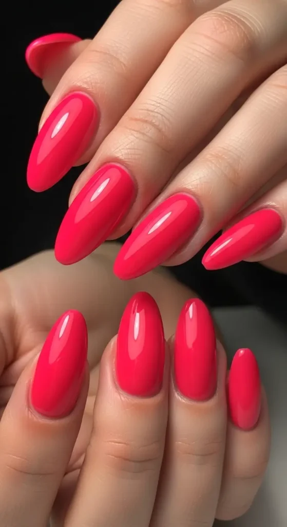 Hot pink nails are bold and eye-catching. This vibrant color adds energy and confidence to your manicure, making it perfect for making a statement.