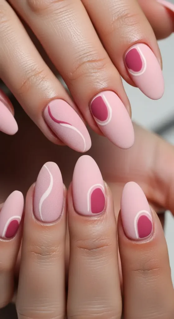 Matte finishes give pink nails a soft and velvety appearance. This modern style feels chic and understated.