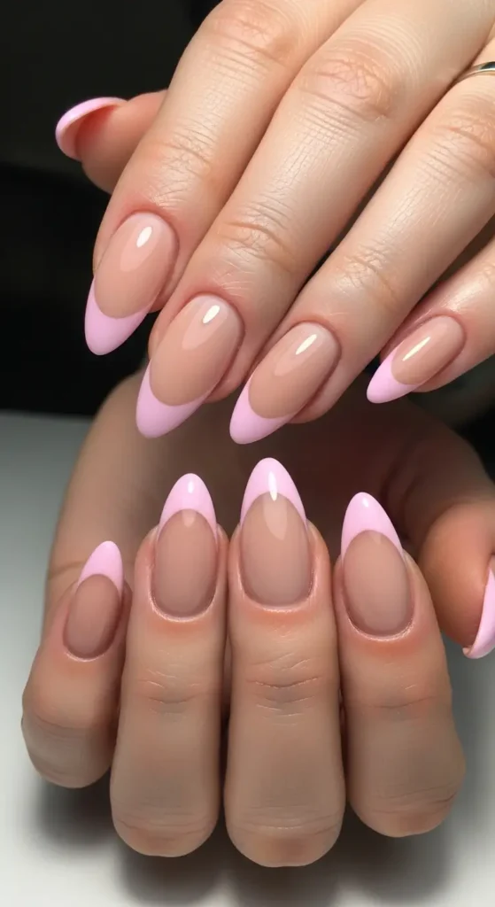 Pink French tips are a trendy twist on the classic manicure. Replacing white tips with pink adds a fresh and feminine touch.