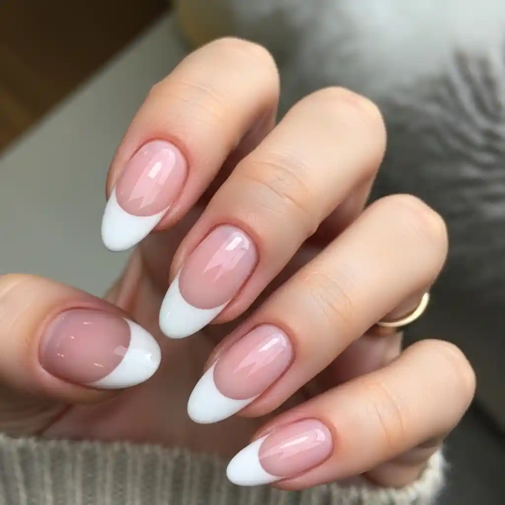 French-inspired white nails create a refined and elegant look. This style pairs well with Valentine’s Day outfits and works for any occasion.